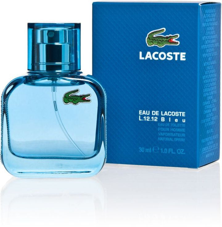 Eau de Lacoste l.12.12- The spirit of the classic Lacoste polo shirt captured in a fragrance collection. Bleu - the blue edition moves from the pure classic scent of l.12.12 Blanc to something more powerful. The top notes combine a dose of citrusy grapefruit with cool aquatic notes of peppermint and watery fruits. At the heart there is a smooth and aromatic accord of sage which blends with an earthy dry down of patchouli, amber wood and oak moss to create a deep, powerful, and intensely masculine scent.